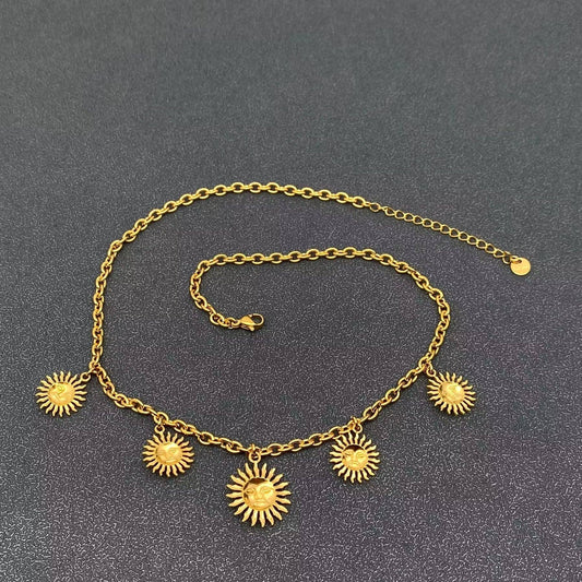 5 Sun Charms 18K Gold Plated Stainless Steel Necklace - FGS/MS