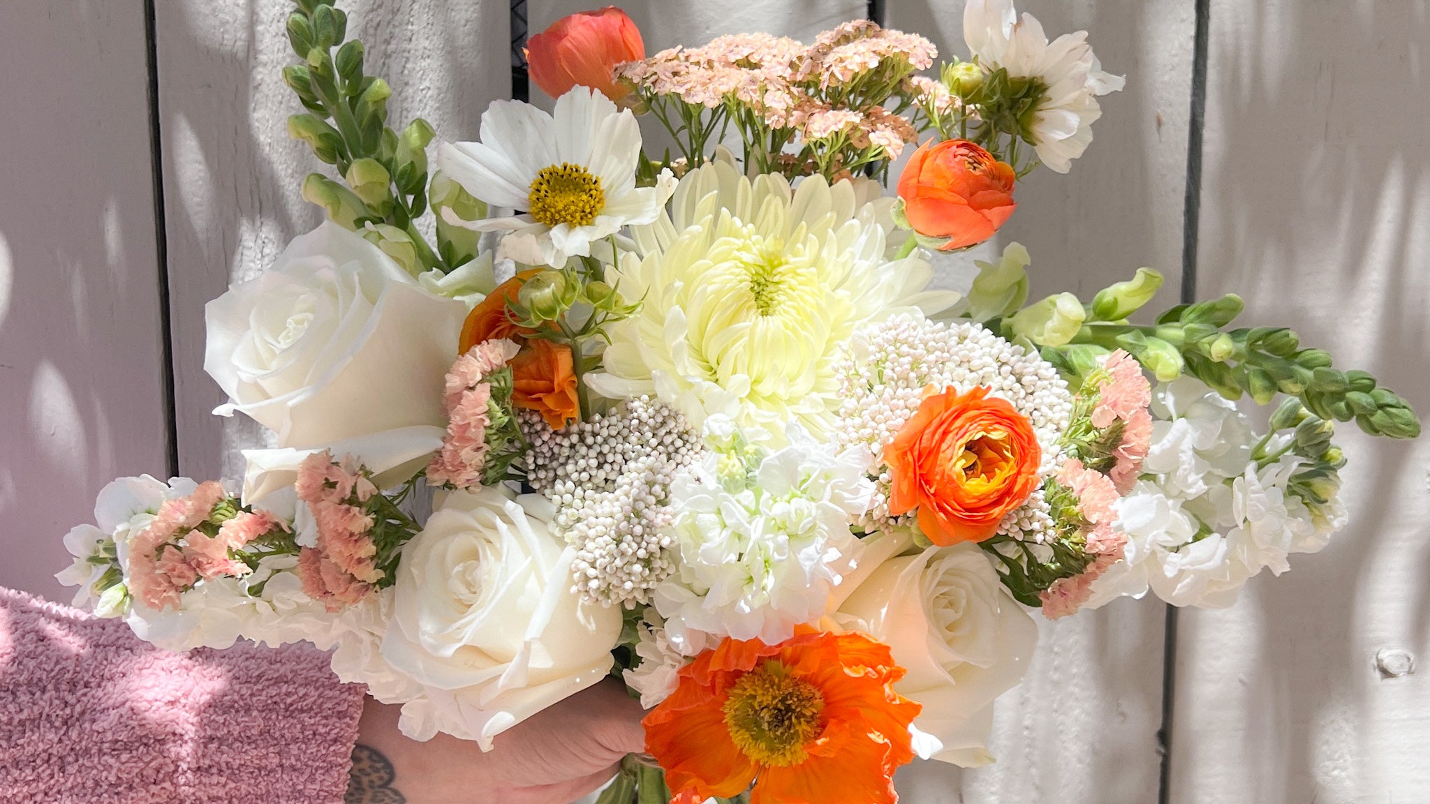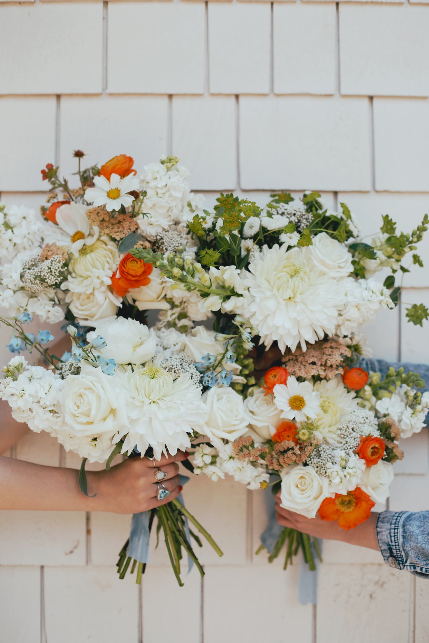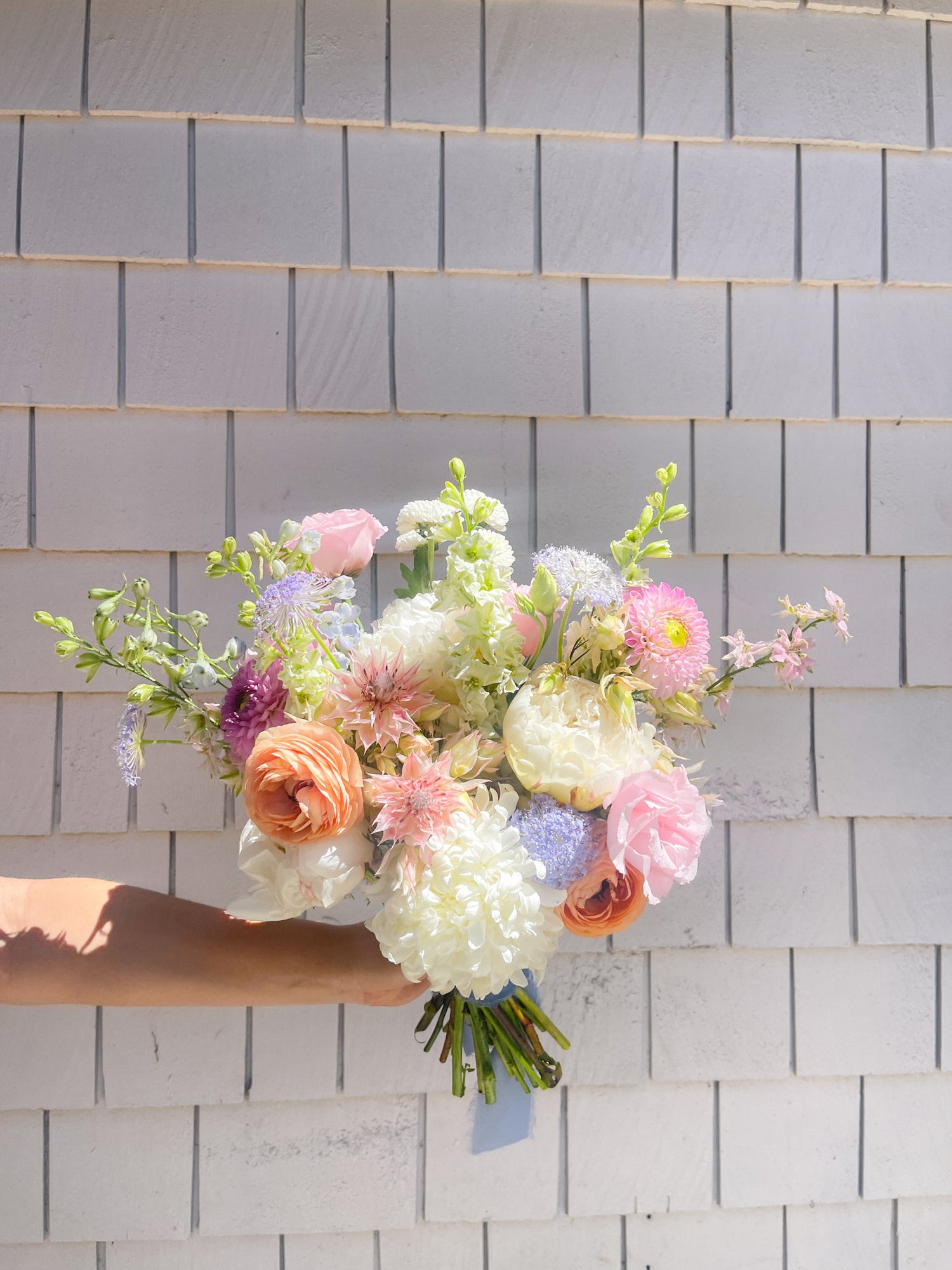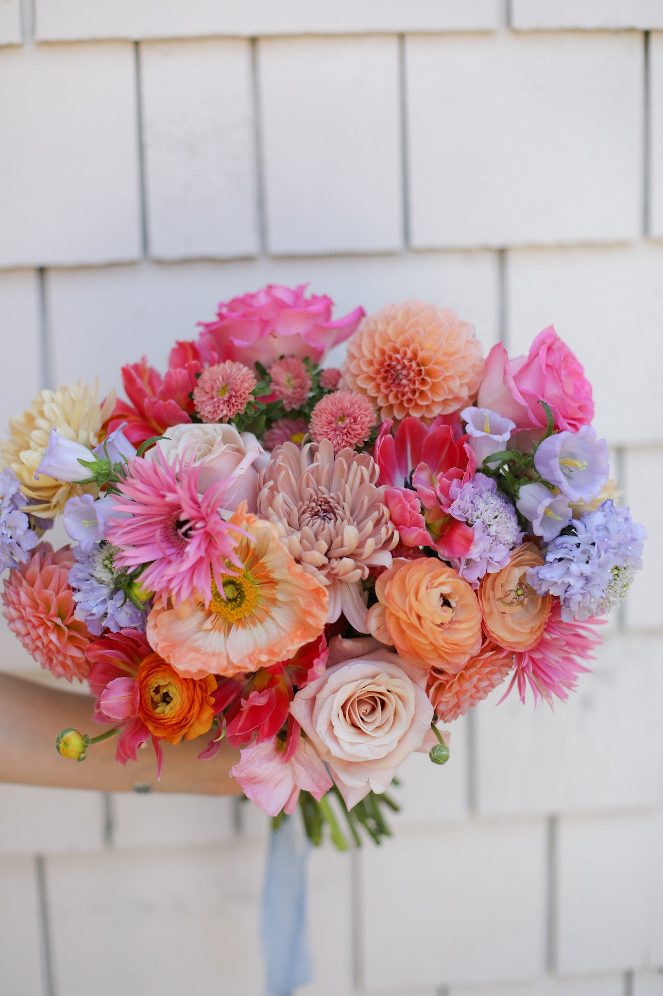 Ashlyn wanted bright, juicy colors for her bridal bouquet, along with delicate seasonal blooms like Dahlias, Peonies, and Sherbet Poppies.